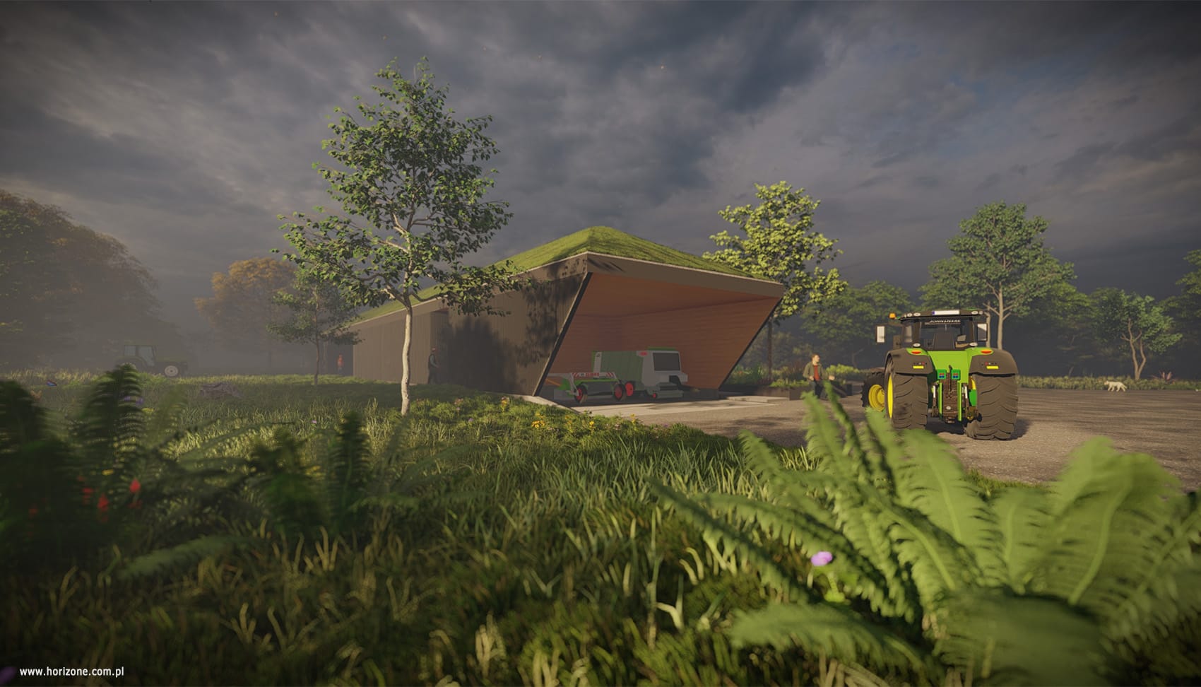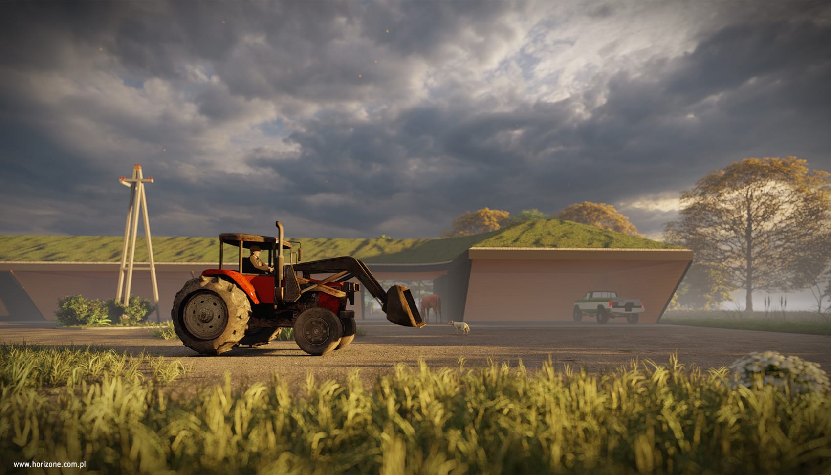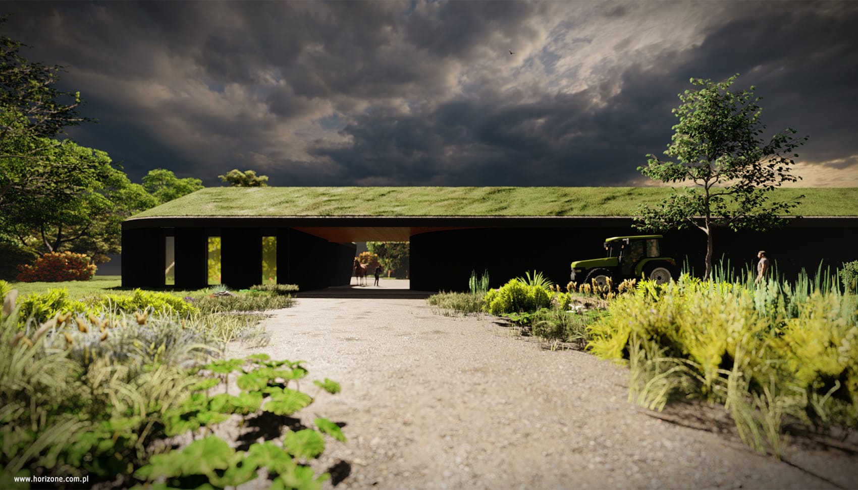 The design of this farm in a town near Krakow was based on detailed guidelines from the investor, including the functional layout of the site, the layout of machinery and additional facilities, and requirements for safety and technical infrastructure. As part of the project, detailed measurements and site visits were conducted to precisely determine the layout of fences, the location of gates, and security zones. A lighting and monitoring system was also designed, with the priority being to minimize energy consumption and reduce light pollution. The centerpiece of the project is a new entrance area with two modular pavilions: a guardhouse with social facilities and a technical facility housing, among other things, a power generator.