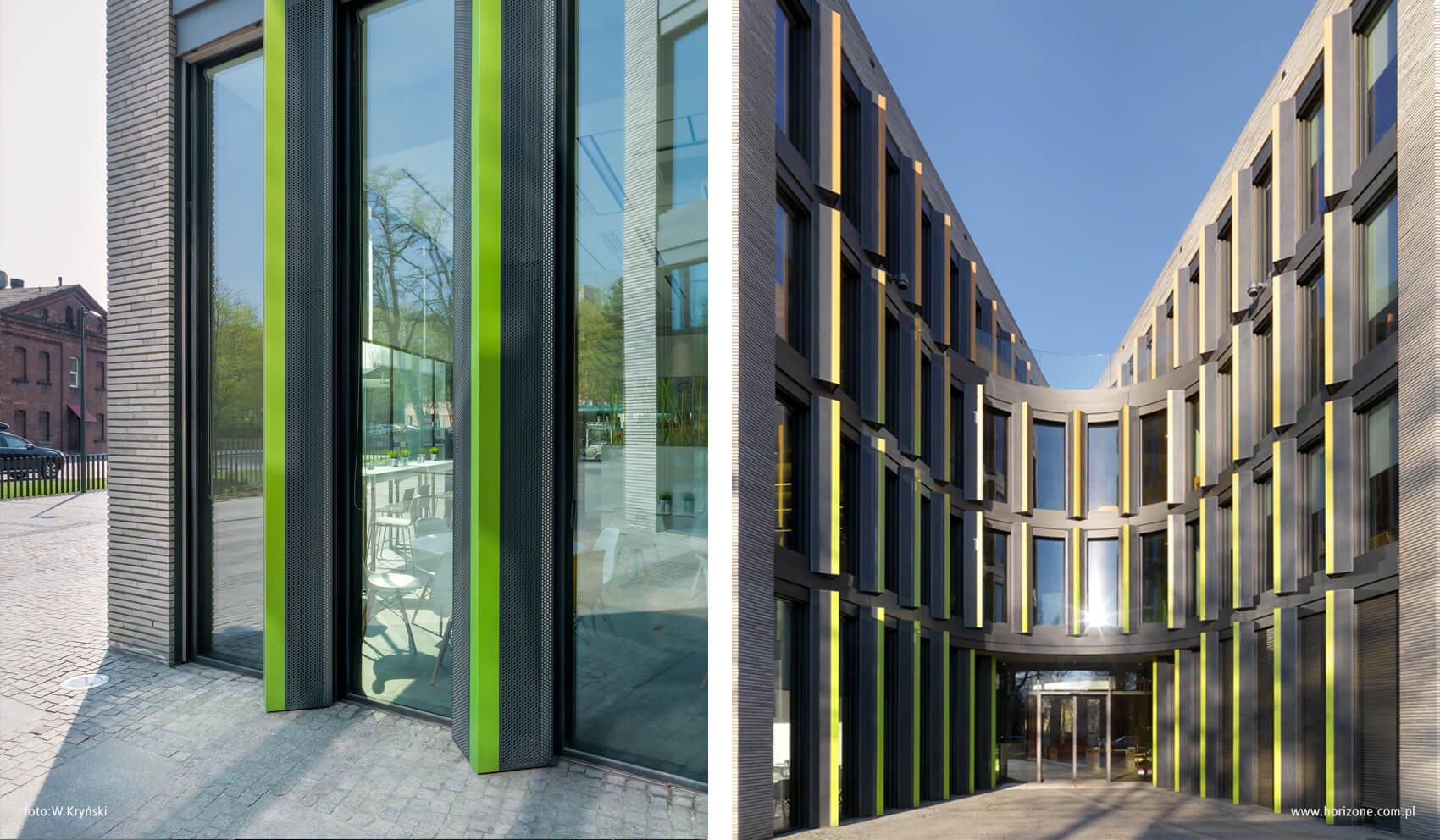 Each floor is equipped with the conference rooms and recreational facilities for employees. The layout of the building has been designed to fulfill specific work and security requirement of the client. Repeatable rhythm of the external elevations recollects the style of the nineteenth-century factory buildings that were common in Łódź.