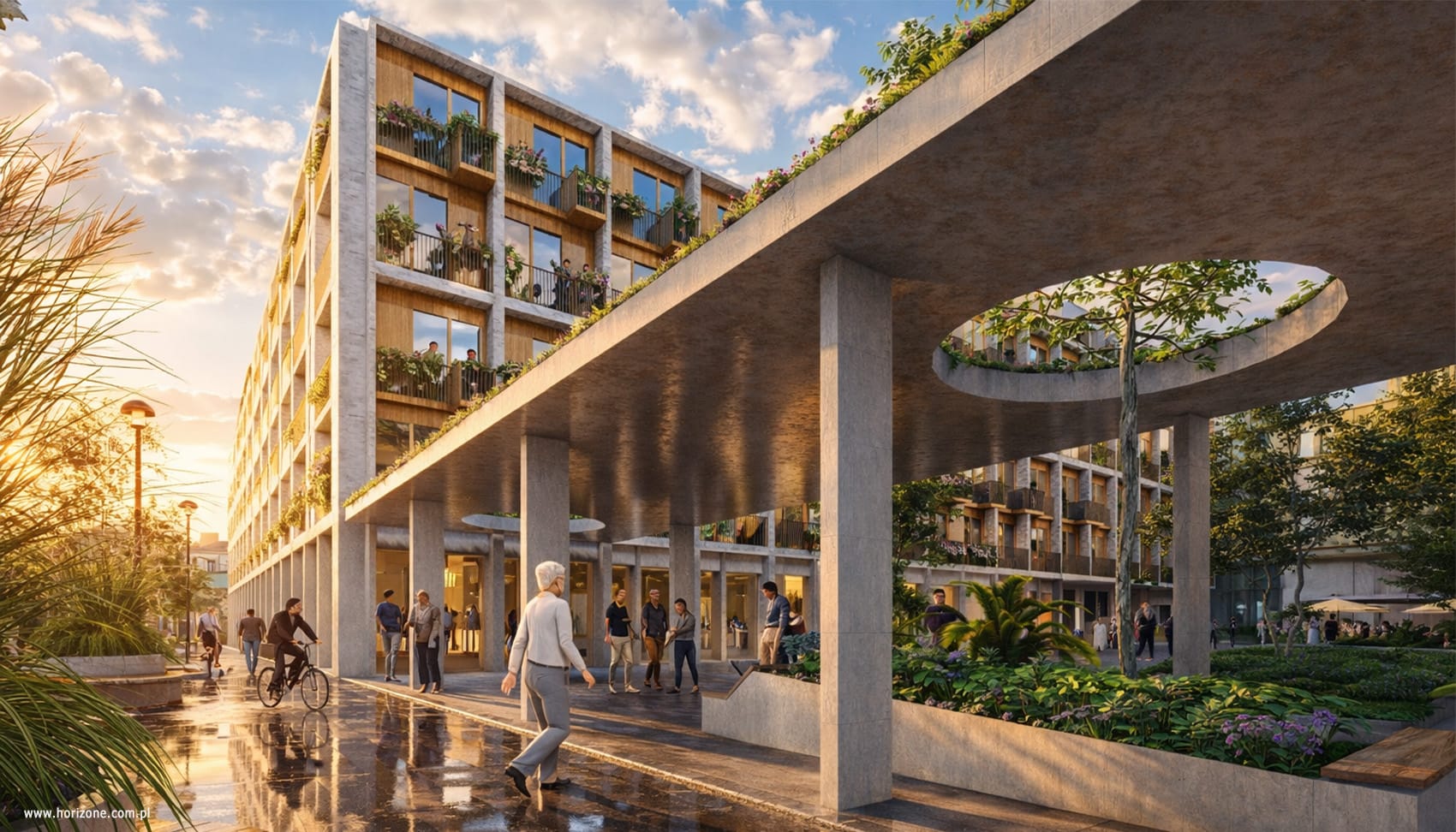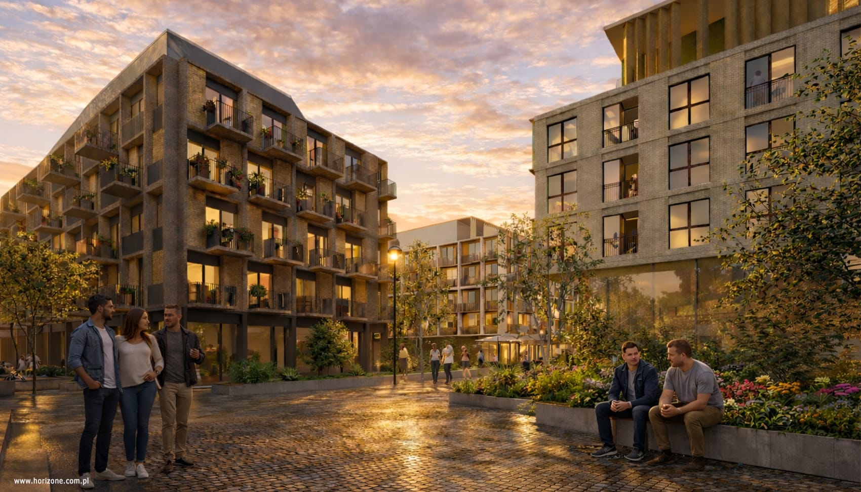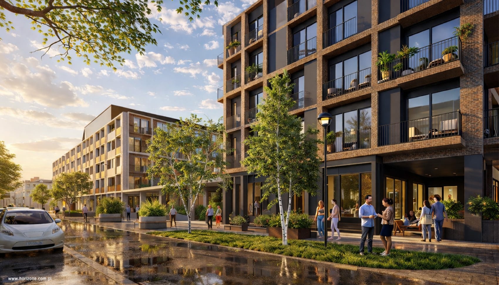Particular attention was paid to the quality of common spaces, green courtyards, clear pedestrian routes, and semi-public zones, which foster integration and foster local identity. The design is characterized by subdued colors, a simple, contemporary form, and the use of durable, traditional materials such as brick and steel, referencing the history of the site and the city context.