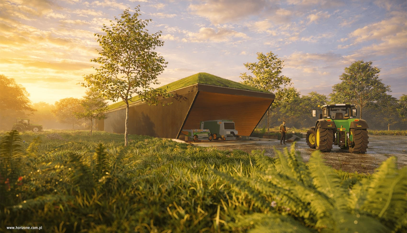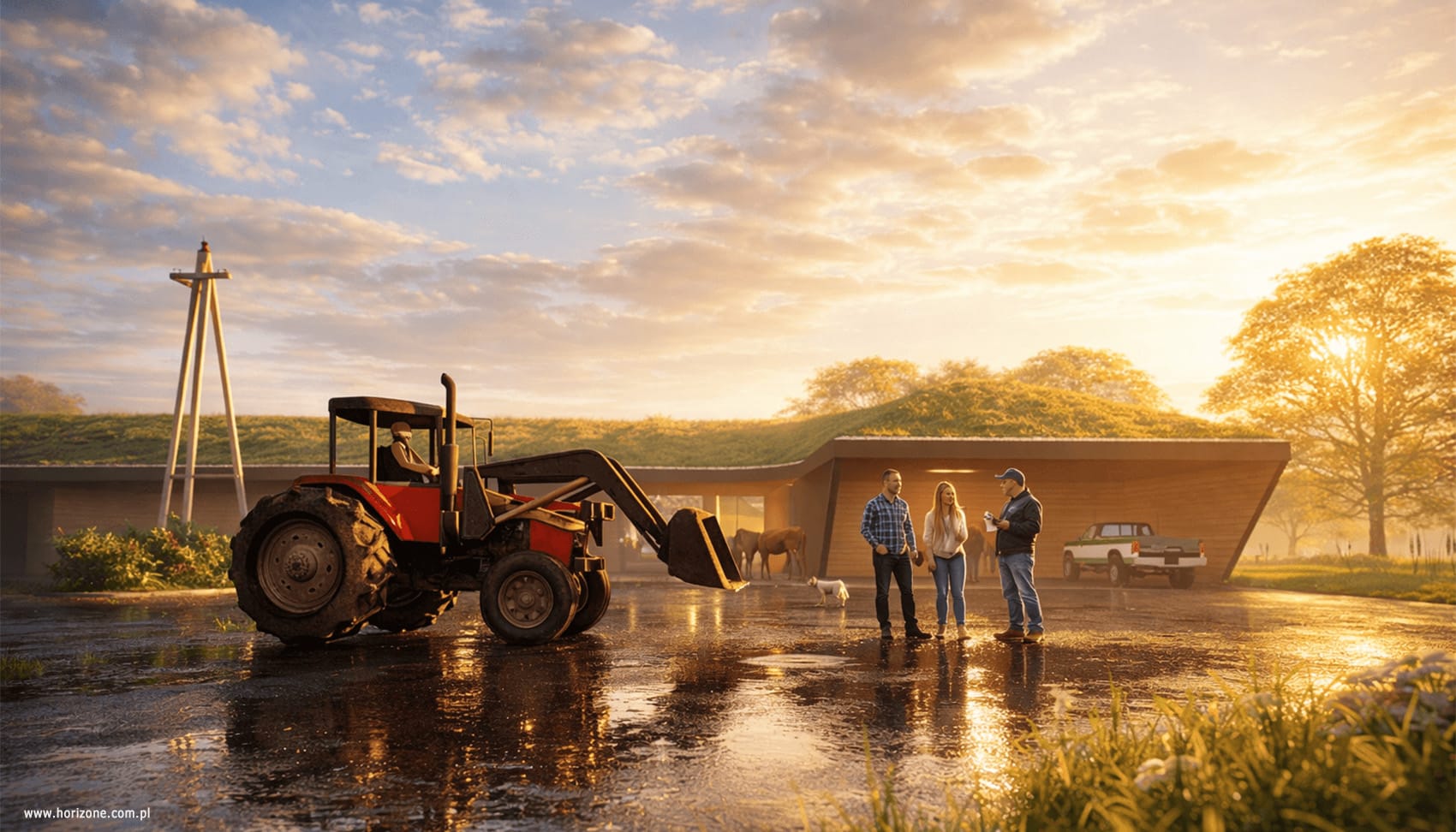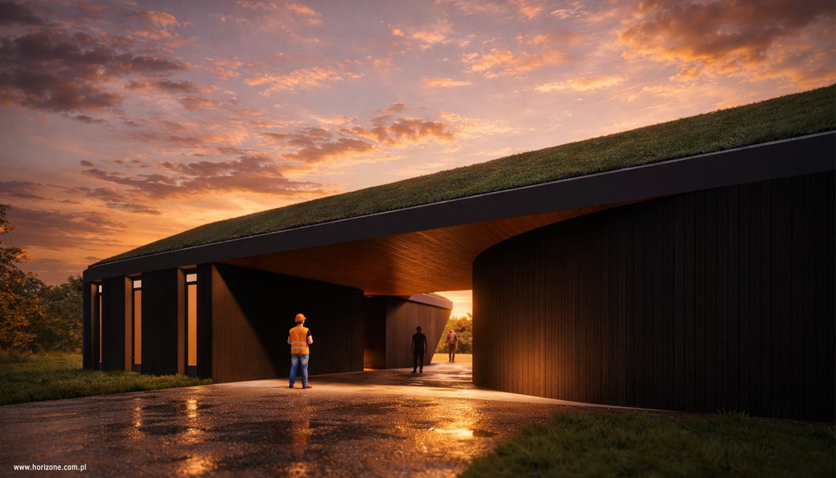 Projekt gospodarstwa rolnego w miejscowości nieopodal Krakowa został oparty na szczegółowych wytycznych inwestora, obejmujących układ funkcjonalny terenu, rozmieszczenie maszyn i pomieszczeń dodatkowych oraz wymagania dotyczące bezpieczeństwa i infrastruktury technicznej. W ramach opracowania wykonano szczegółowe pomiary i wizje lokalne, aby precyzyjnie wyznaczyć przebieg ogrodzeń, lokalizację bram oraz stref bezpieczeństwa. Zaprojektowano również system oświetlenia i monitoringu, którego priorytetem jest minimalizacja zużycia energii oraz ograniczenie zjawiska „light pollution”. Centralnym elementem inwestycji jest nowa strefa wjazdowa z dwoma modułowymi pawilonami: wartownią z zapleczem socjalnym oraz obiektem technicznym mieszczącym m.in. agregat prądotwórczy.